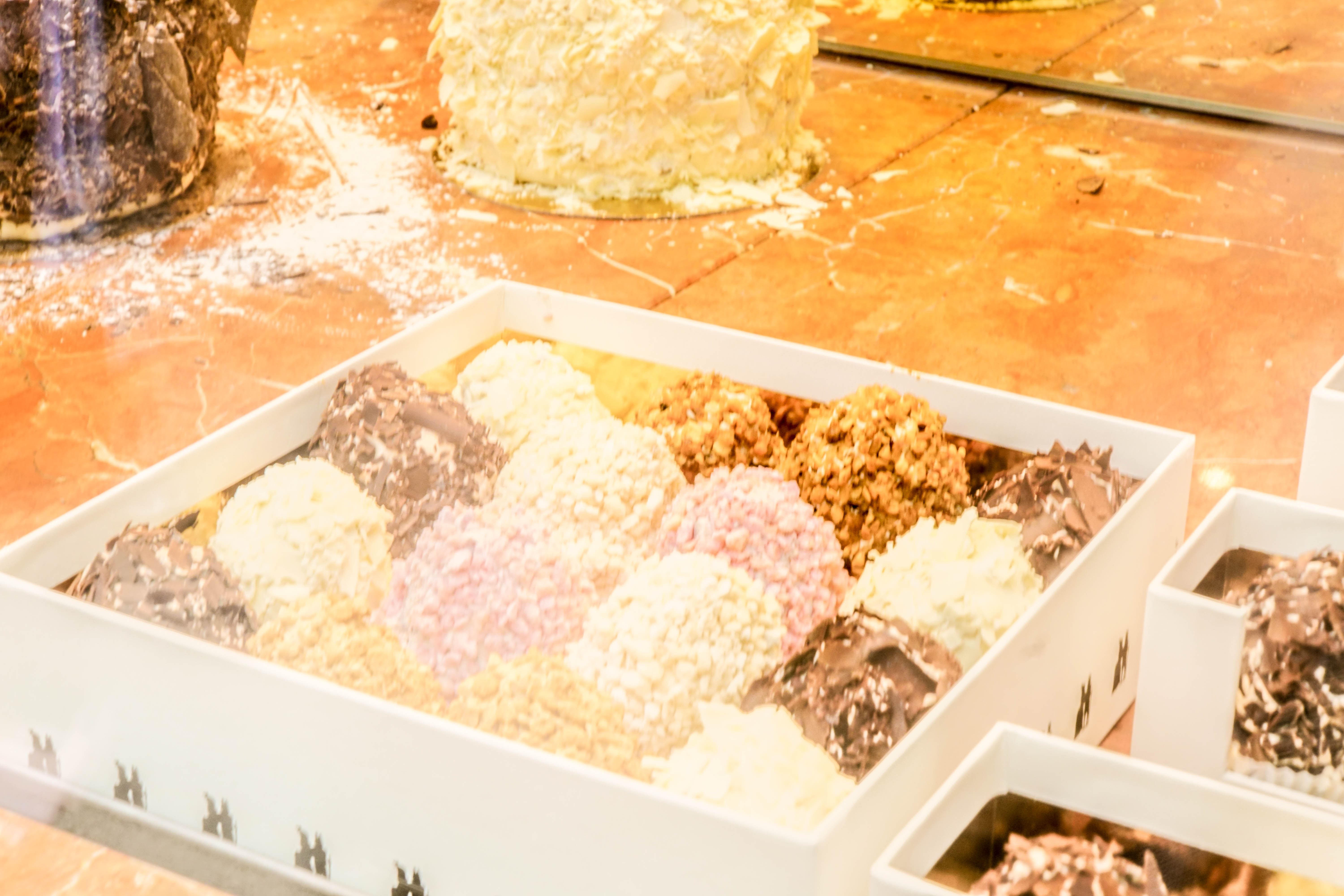 在市區裡隨意逛逛,經過這家看起來非常豪華的糕點店,在外面看到非熱門時段卻很多人在排隊,想說這現象在歐洲滿少見的,到底是什麼厲害的東西呢?所以就跟著人群排隊,然後隔著窗戶看著店員在製作的蛋白酥!!接著愈來越多人跑過來看跟排隊XDDD