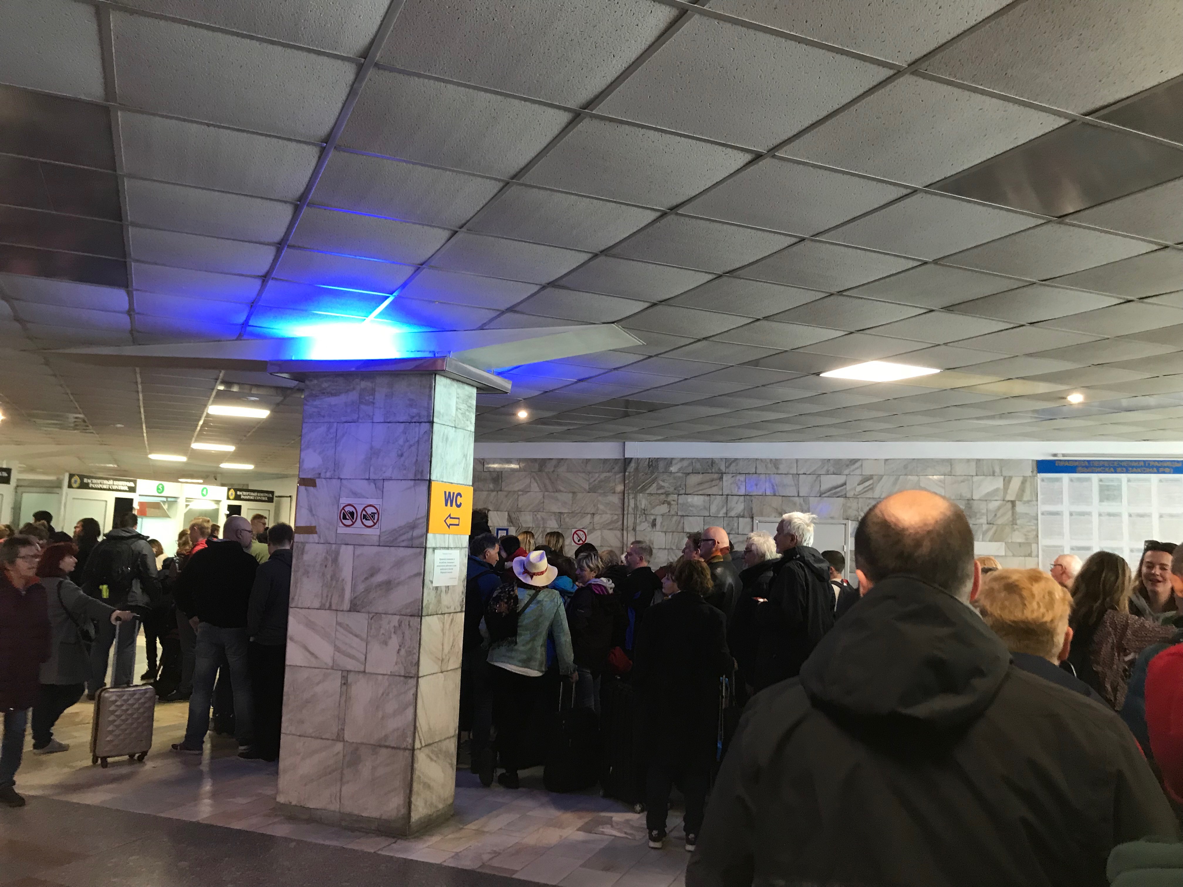 最後等船開到聖彼得堡的時候其實都會有廣播,船停下來的話也會有感覺,所以不用太過擔心要什麼時候起床的問題,倒是比較擔信要多久才可以進去聖彼得堡市區,我們大概九點半從房間出去,出去的時候大廳已經很多人了,大家等著出船然後到海關那裡,整個時間如果你不是衝第一個的話我想要兩個多小時,尤其是在等海關入境的時候,而且當我們在等的時候完全都不知道隊伍是怎麼排,大家基本上就是亂排,你只能找哪裡是尾就跟著排,但也不知道哪個比較快,後來在出境的時候終於搞清楚他分左右兩邊的出境海關,所以當你剛下船的時候右邊的海關是你看得到的,左邊的話因為距離比較遠所以是看不到的,所以如果你下船發現裡面一團亂,那就建議排右邊,因為至少你可以看到隊伍的尾巴。
